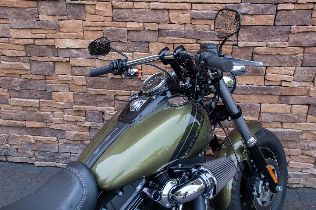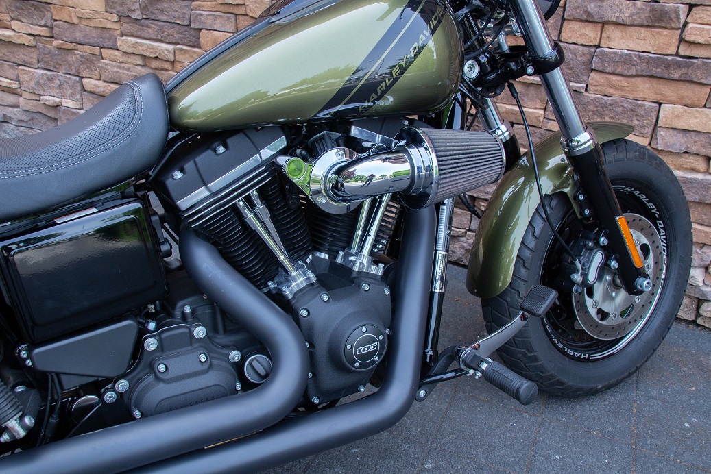 De Fat Bob wordt aangedreven door een Twin Cam 96-motor met een 6-versnellingsbak. Boven de motor bevindt zich de beroemde 5,1-gallon Fat Bob brandstoftank. Een nieuwe vorm van het zadel voor twee personen in combinatie met de drag bars om de rijder in een nonchalante coole positie te plaatsen. De zithoogte is slechts 26,1 inch.